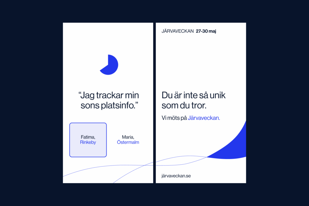 Exempelvis kan citatet “Jag vill börja om” tilldelas “Daoud, nyskild” eller “Sukhman, nyanländ” och ”Utan Bank-ID blir livet svårt” kan tilldelas Haadi, saknar svenskt personnummer eller Lennart, 81. Budskapet landar i formuleringen: ”Du är inte så unik som du tror.” En medvetet utmanande formulering som följs av inbjudan: ”Vi möts på Järvaveckan.”